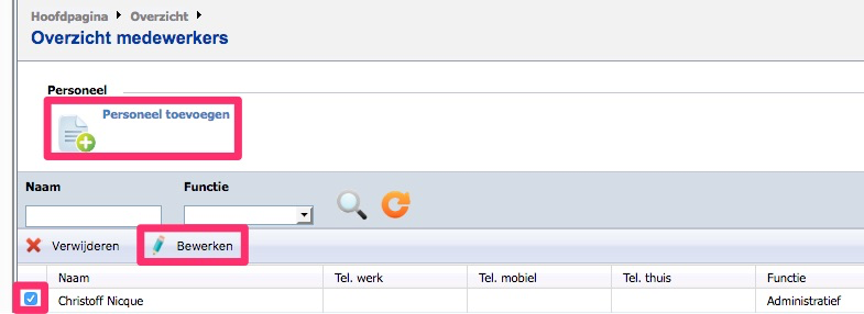 In de fiche van de medewerker, moet je volgende gegevens instellen (of wijzigen):