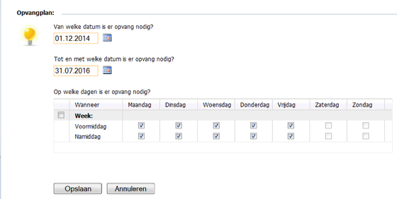 Als je geen opvangplan hebt ingegeven, dan zal je zelf een leefgroep kunnen kiezen.
