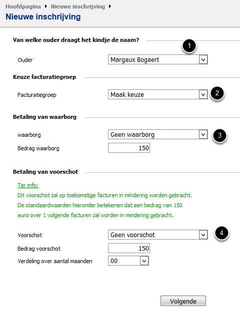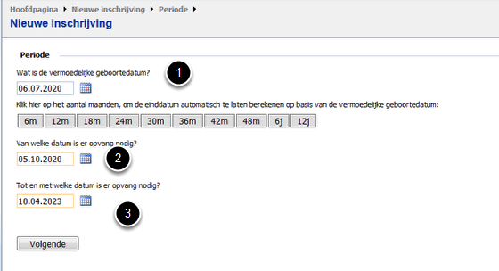 2) Geef de datum in vanaf wanneer het kindje naar de opvang zal komen.