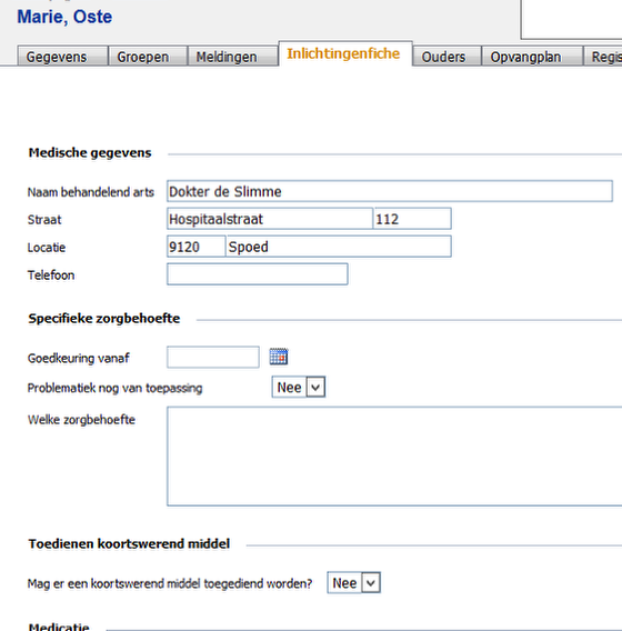 Hier kan je alle medische gegevens invullen.