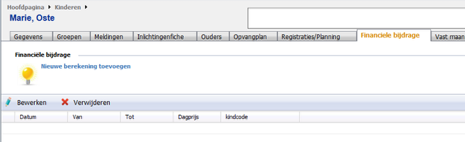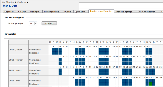 Bij registraties / planning kan je terugvinden hoe het kindje in het verleden opgevangen werd en hoe het nog zal komen in de toekomst.