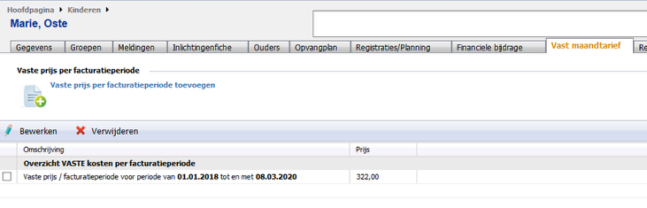 Bij het tabje Vast maandtarief kan je de vaste maandprijs die betaald dient te worden ingeven.