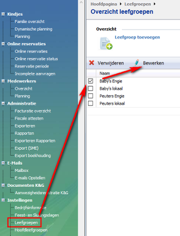 Selecteer uw leefgroep of hoofdleefgroep en kies bewerken