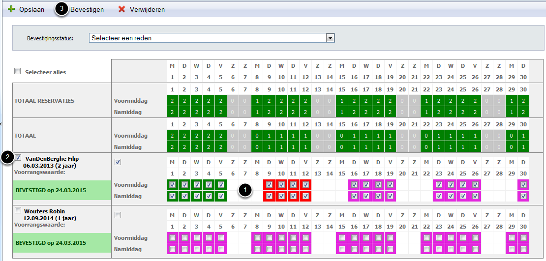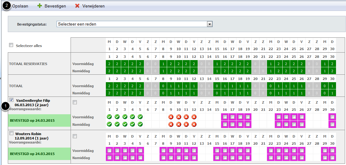 Online reservaties die door de ouders werden aangevraagd moeten ook goedgekeurd of afgekeurd worden om in de d-care planning en touch te verschijnen.