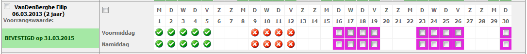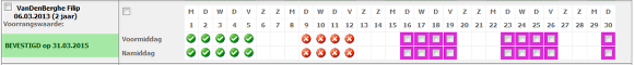 Heb je gemerkt dat je fout bent geweest, dan kan je altijd de status van deze dagen neutraal maken (paarse achtergrond) of corrigeren naar de juiste status.