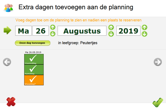 Marie komt normaal gezien op maandag, dinsdag, donderdag en vrijdag. De mama vraagt of ze komende week woensdag kan komen in plaats van vrijdag. Dit zou normaal gezien een extra dag zijn die ook extra aangerekend wordt. Als je dan de wisseldag aanvinkt, dan zal deze woensdag niet aangerekend worden.