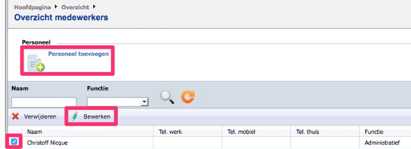 In de fiche van de medewerker, moet je volgende gegevens instellen (of wijzigen):