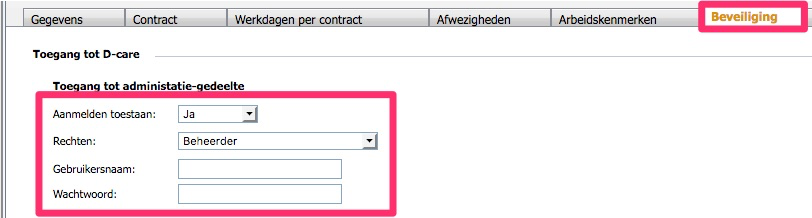 Zodra de gebruiker is toegevoegd is d-care beveiligd met een wachtwoord.