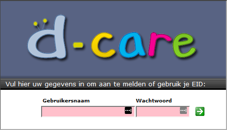 Wanneer je in d-care wil inloggen zal dit niet meer gaan zonder gebruikersnaam en wachtwoord