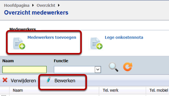 Je gaat in de menustructuur naar het overzicht van de medewerkers.