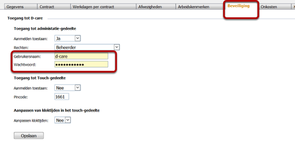 Wanneer één van deze medewerksters wordt ontslagen, kan zij vanop elke locatie met internet aanmelden in d-care dmv de klantcode en het gedeelde wachtwoord.