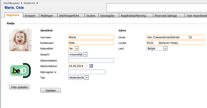 Je kan hier ook de foto van het kindje toevoegen/wijzigen.