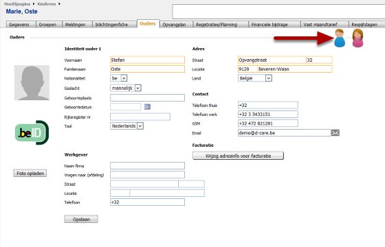 Hier kan je alle contactgegevens van de ouders terugvinden.