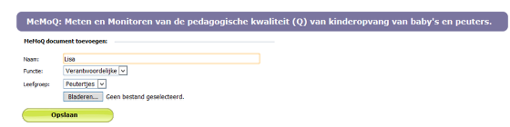 MeMoQ is een zelfevaluatie instrument, ontwikkeld voor de kinderopvang. Dit is een instrument waarmee je als kinderdagverblijf mee aan de slag kan gaan om de werking te evalueren en hierbij vooral aandachtig te zijn voor het eigen handelen.
