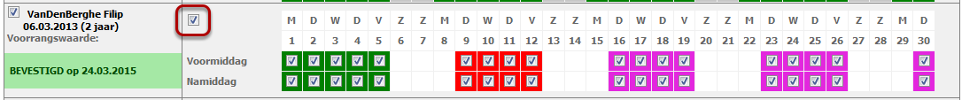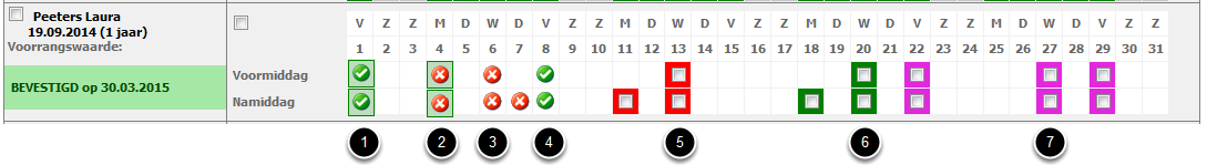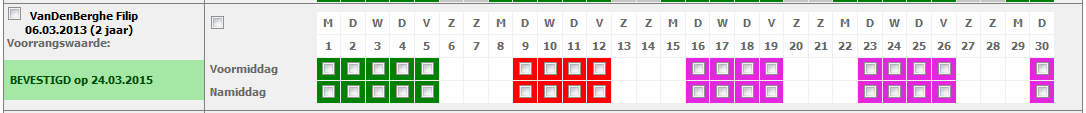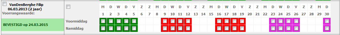 Heb je gemerkt dat je fout bent geweest, dan kan je altijd de status van deze dagen neutraal maken (paarse achtergrond) of corrigeren naar de juiste status.