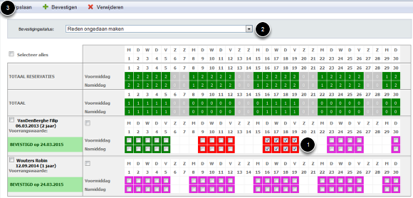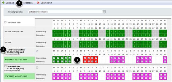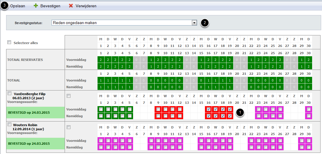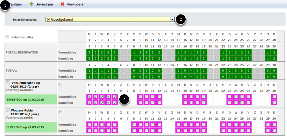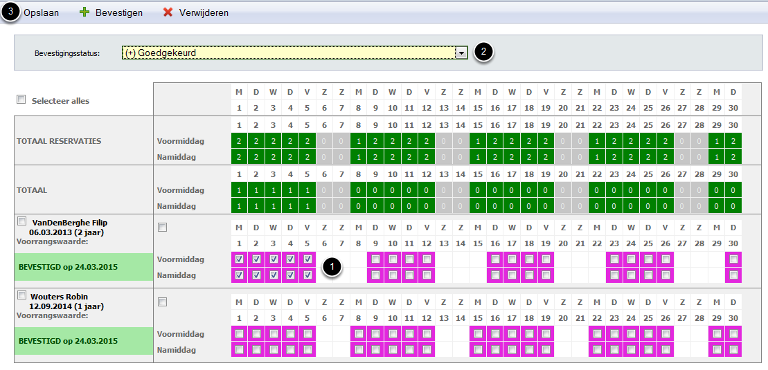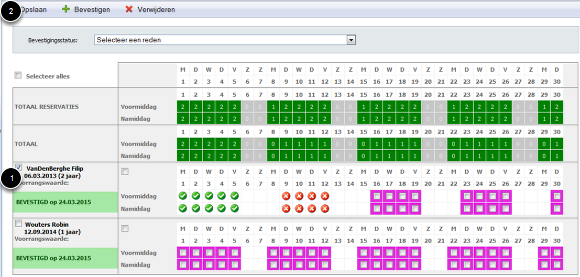 Online reservaties die door de ouders werden aangevraagd moeten ook goedgekeurd of afgekeurd worden om in de d-care planning en touch te verschijnen.