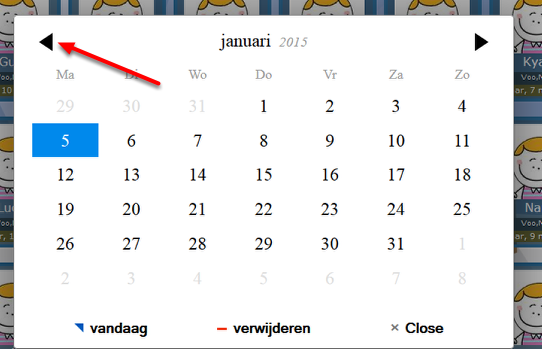 Ga naar de gewenste datum via de groene pijltjes of via de kalender (verschijnt door op de datum te klikken)